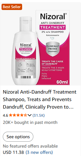 If you’ve tried regular anti-dandruff shampoos without success, Nizoral Anti-Dandruff Shampoo is a dermatologist-recommended solution that targets the root cause of dandruff rather than just the symptoms. Available in a compact 60ml bottle on Amazon UK, it’s a powerful treatment shampoo that has earned thousands of positive reviews.