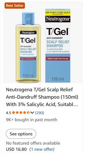 - Neutrogena Salicylic Acid Shampoo → Affordable, exfoliating, and effective for moderate dandruff and scalp build-up.